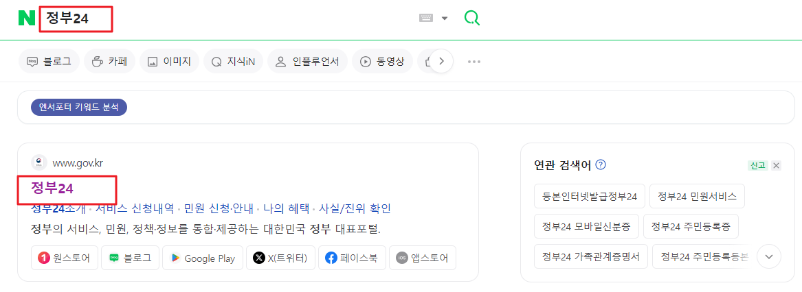 저는 네이버 검색창에서 정부24를 검색했습니다.