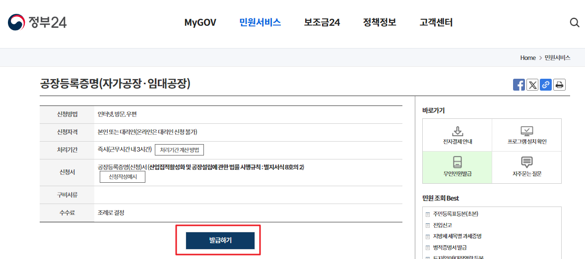 오늘은 공장등록증명서 발급하기에 대해서 알아보았습니다.