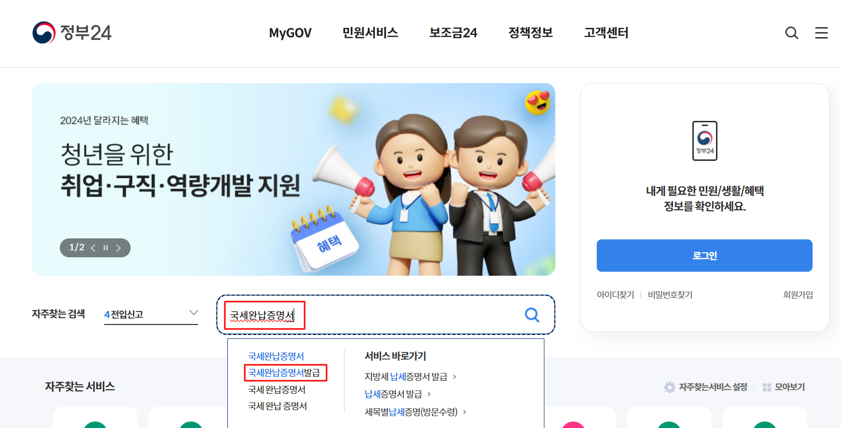 국세완납증명서 인터넷 발급 (정부24사이트에서)