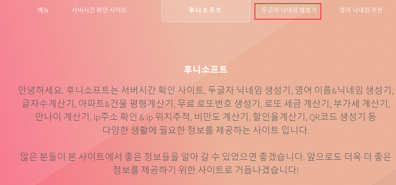 두글자 닉네임 생성을 위한 첫번째 사이트는 후니소트프입니다.