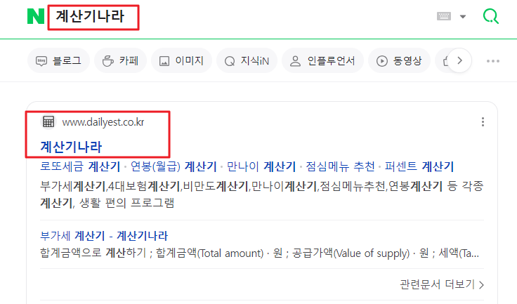 그럼 아래와 같이 나옵니다. 계산기 나라를 클릭해줍니다.