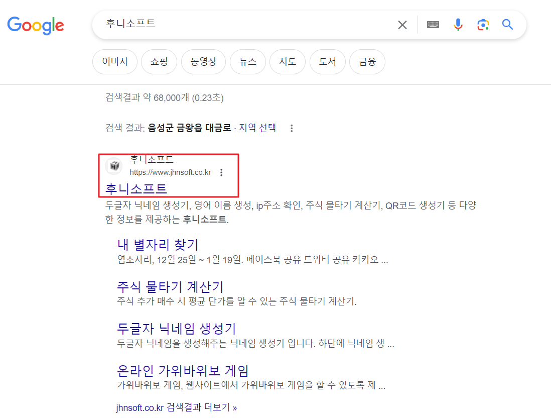 구글에서 후니소프트를 검색하고 후니소프트를 클릭합니다.