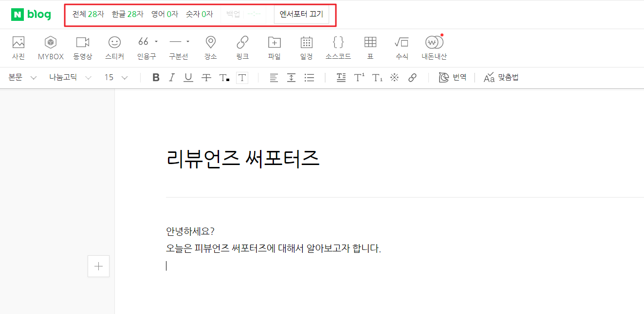 리뷰언즈 엔서포터로 네이버 블로그에 글 작성해 보기