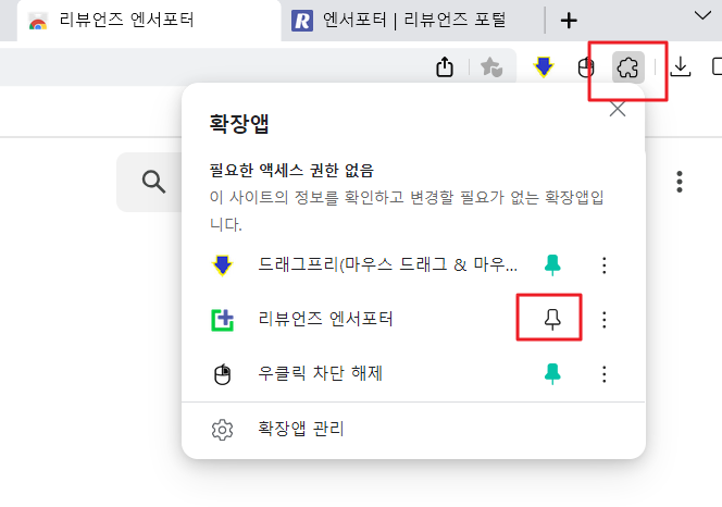 리뷰언즈 엔서포터는 크롬확장 프로그램입니다만 네이버웨일에서도 설치가능합니다.