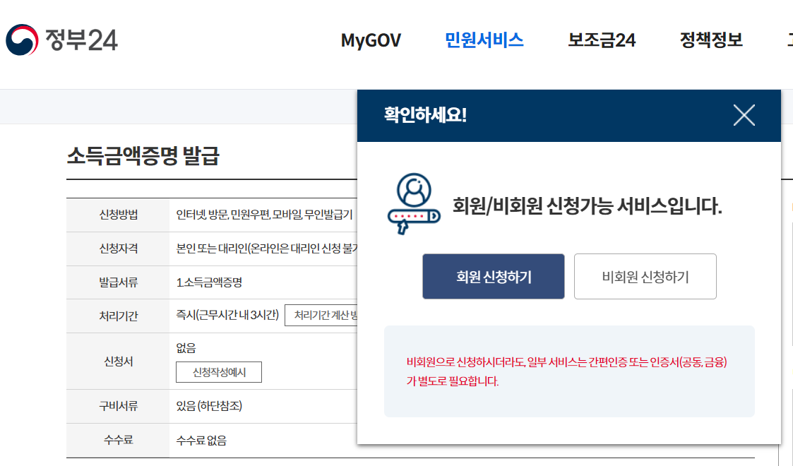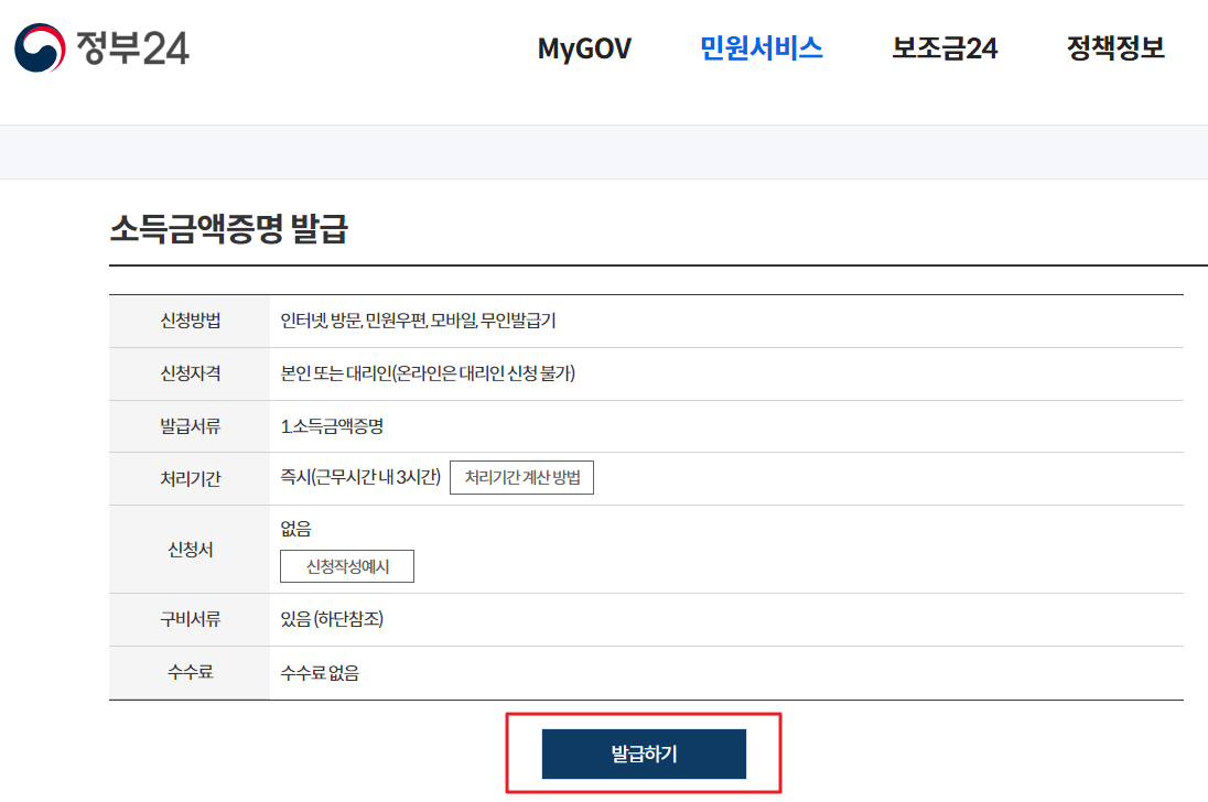 소득금액 증명서 인터넷 발급 방법 - 정부24