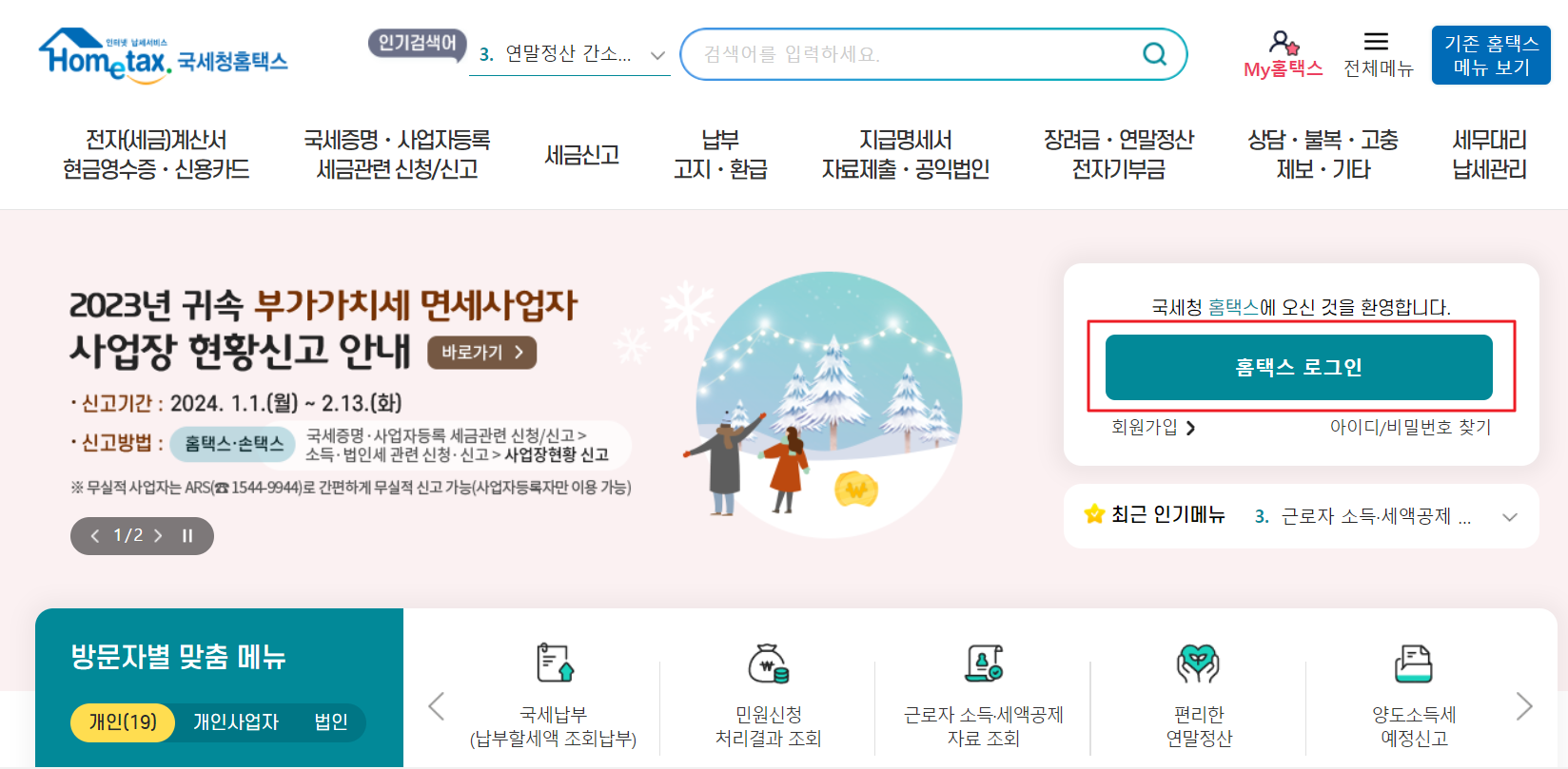소득금액 증명서 인터넷 발급 방법 - 홈택스