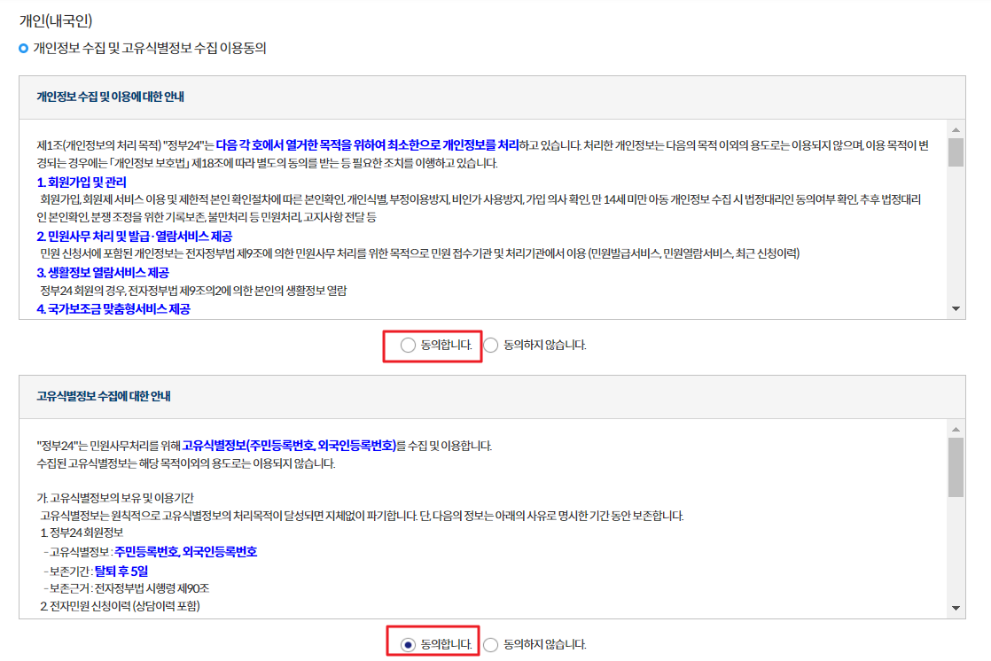 아래 민원신처하기를 누르면 신청이 완료됩니다.