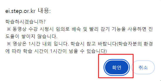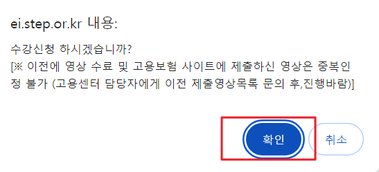 수강신청하시겠습니까? 묻는 질문에 확인을 클릭합니다.
