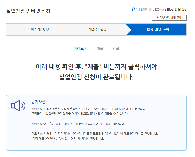 이것까지 신청을 해야 1차 실업급여가 지급됩니다.