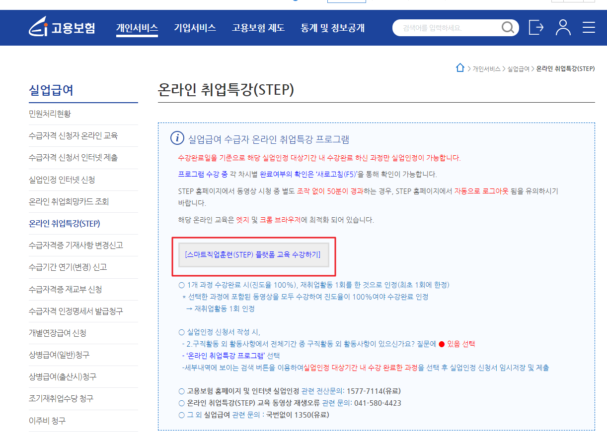 실업급여 1차 실업인정일 온라인 교육 수강 방법