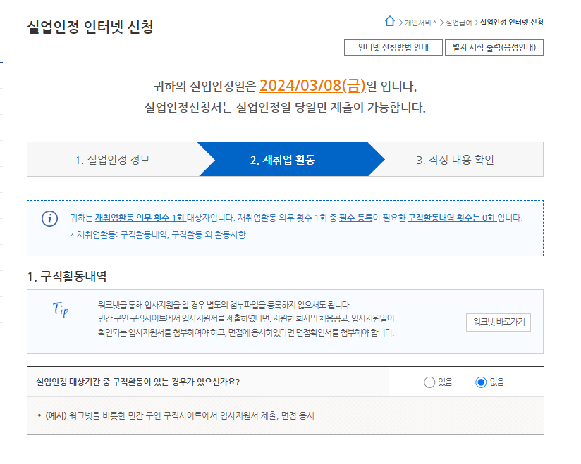2024.02.22 - [분류 전체보기] - 실업급여 워크넷 구직신청 방법