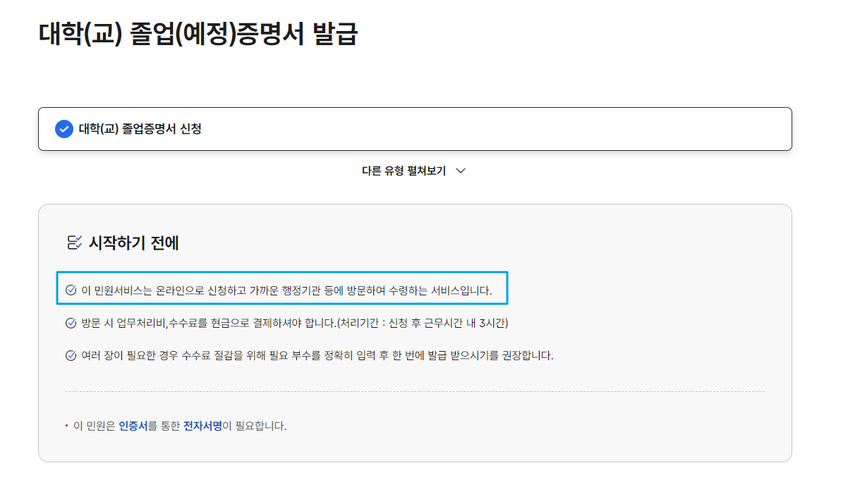 선택한 수령기관을 방문하여 출력된 대학교 졸업증명서를 찾아오시면 됩니다.