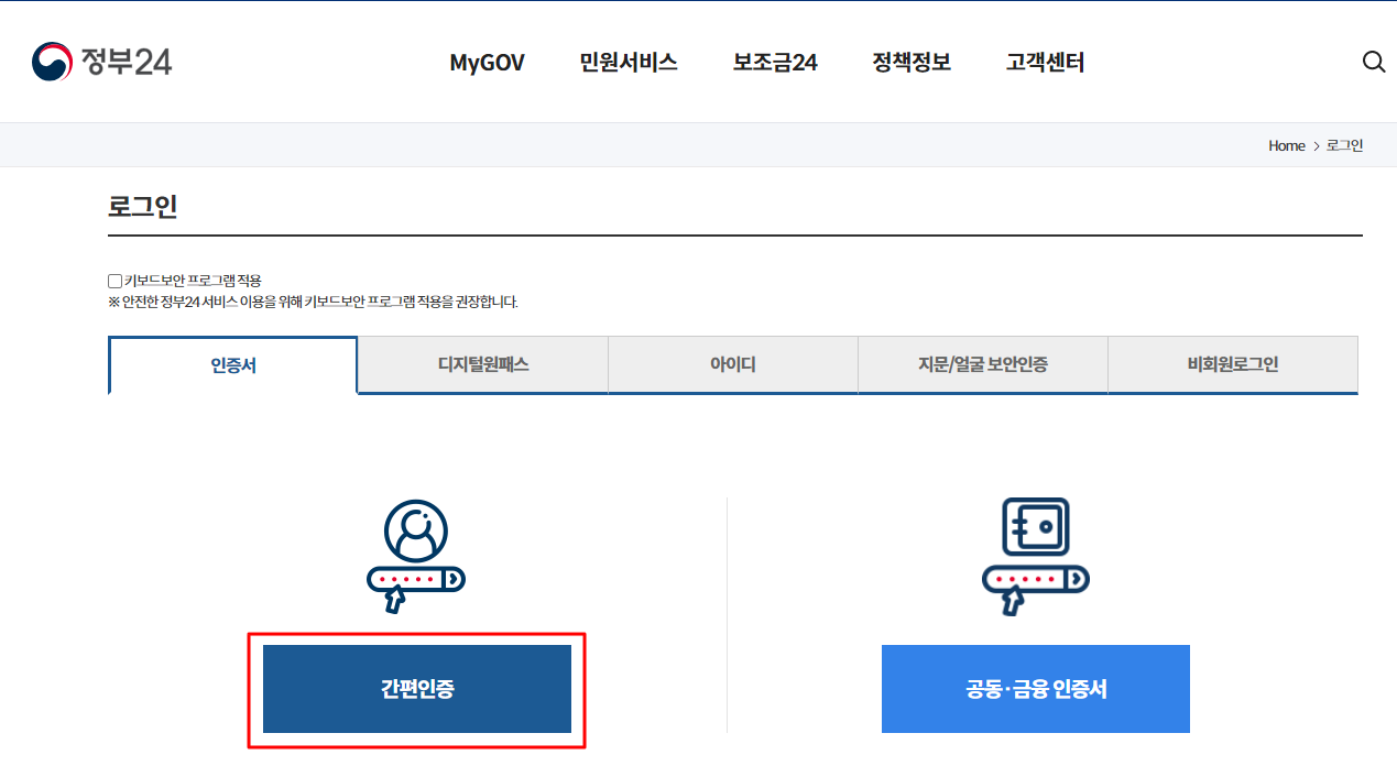 저는 간편인증을 이용하였습니다.