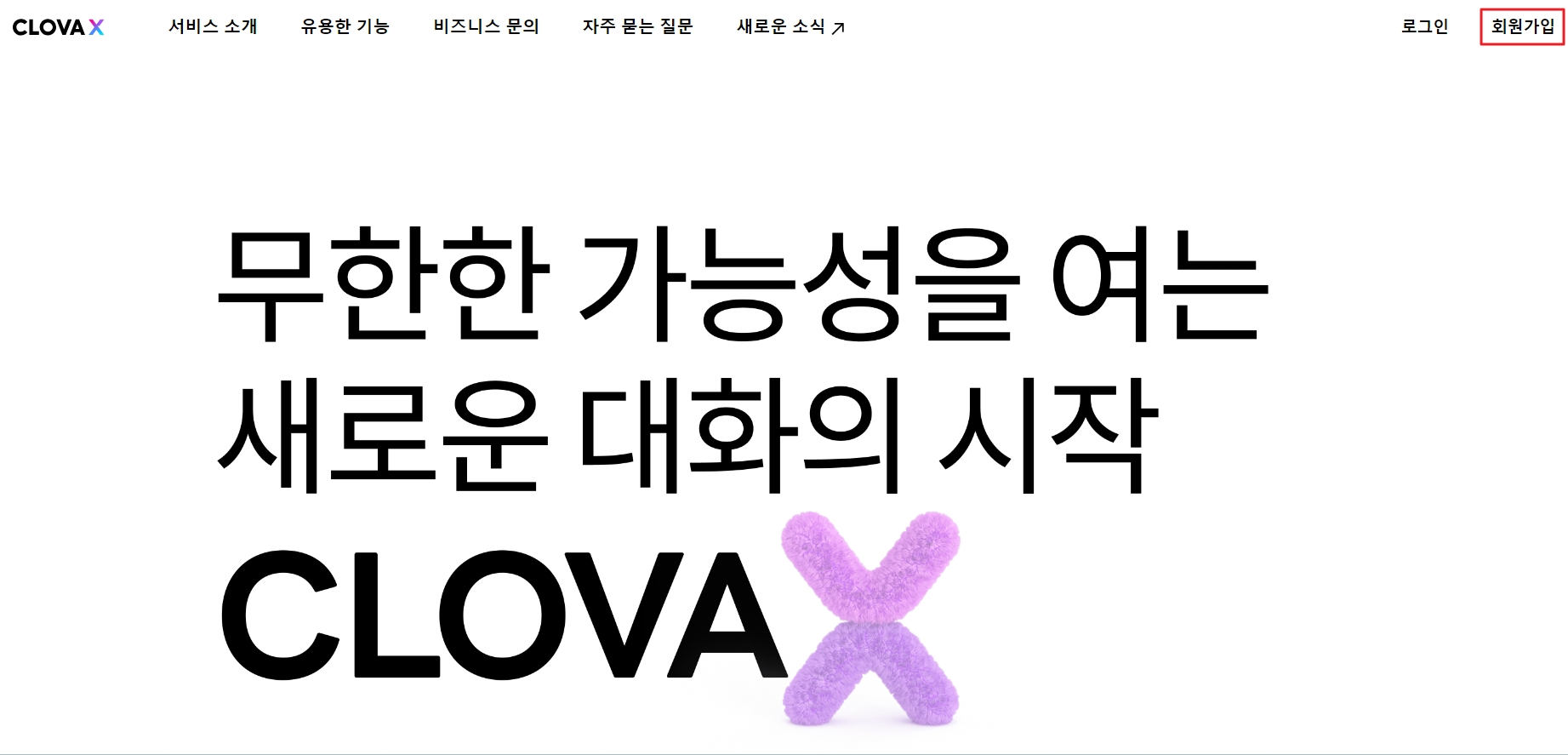 저도 클로바 X를 사용하기 위해서 가입하기를 찾아보았습니다.