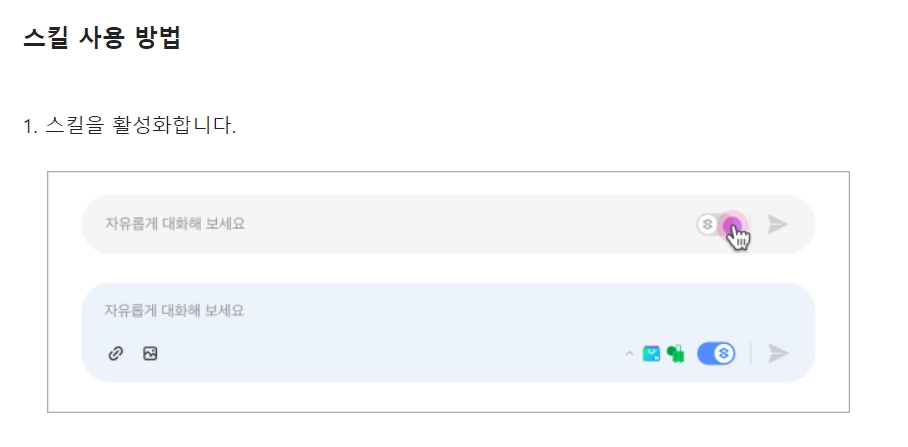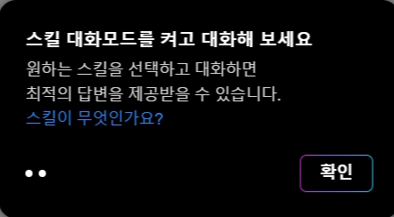 그런데 스킬 대화모드라는게 있네요 궁금해서 스킬이 무엇인가요? 를 클릭해 보았습니다.