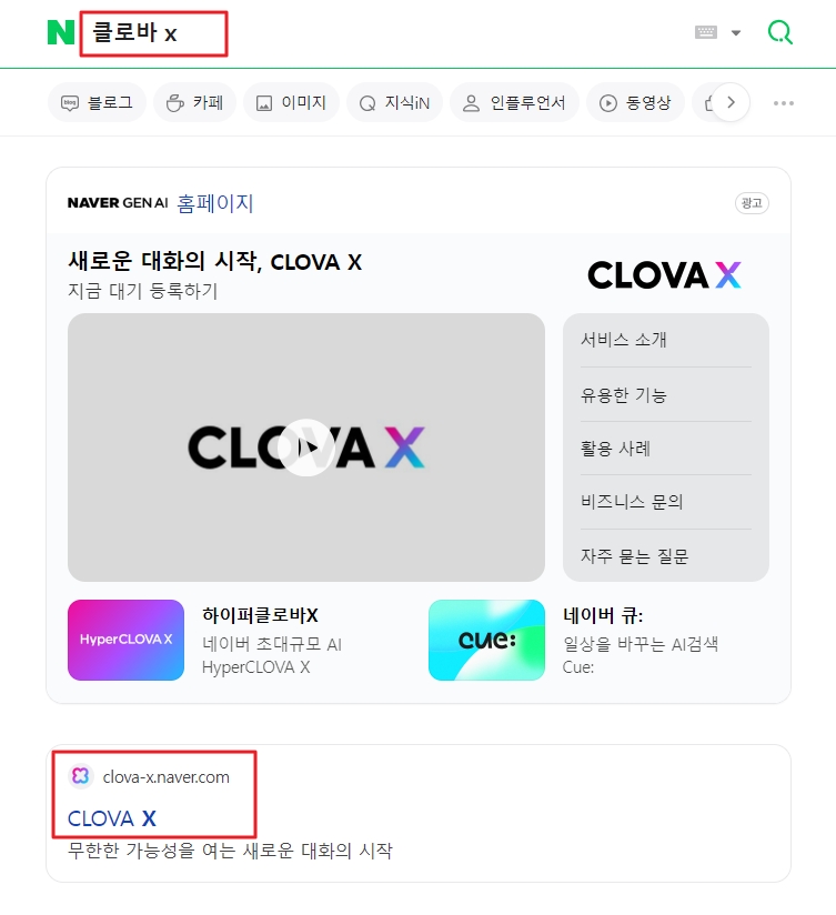 네이버, 구글, 다음 등 검색창에 클로바 X를 검색합니다.
