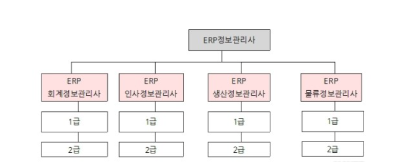 ERP 정보관리사는 ERP 분야 국내 유일의 국가공인자격이다. 회계, 인사, 생산, 물류, 4개 모듈로 나누어져 있고, 평가등급은 1급과 2급으로 구분됩니다.